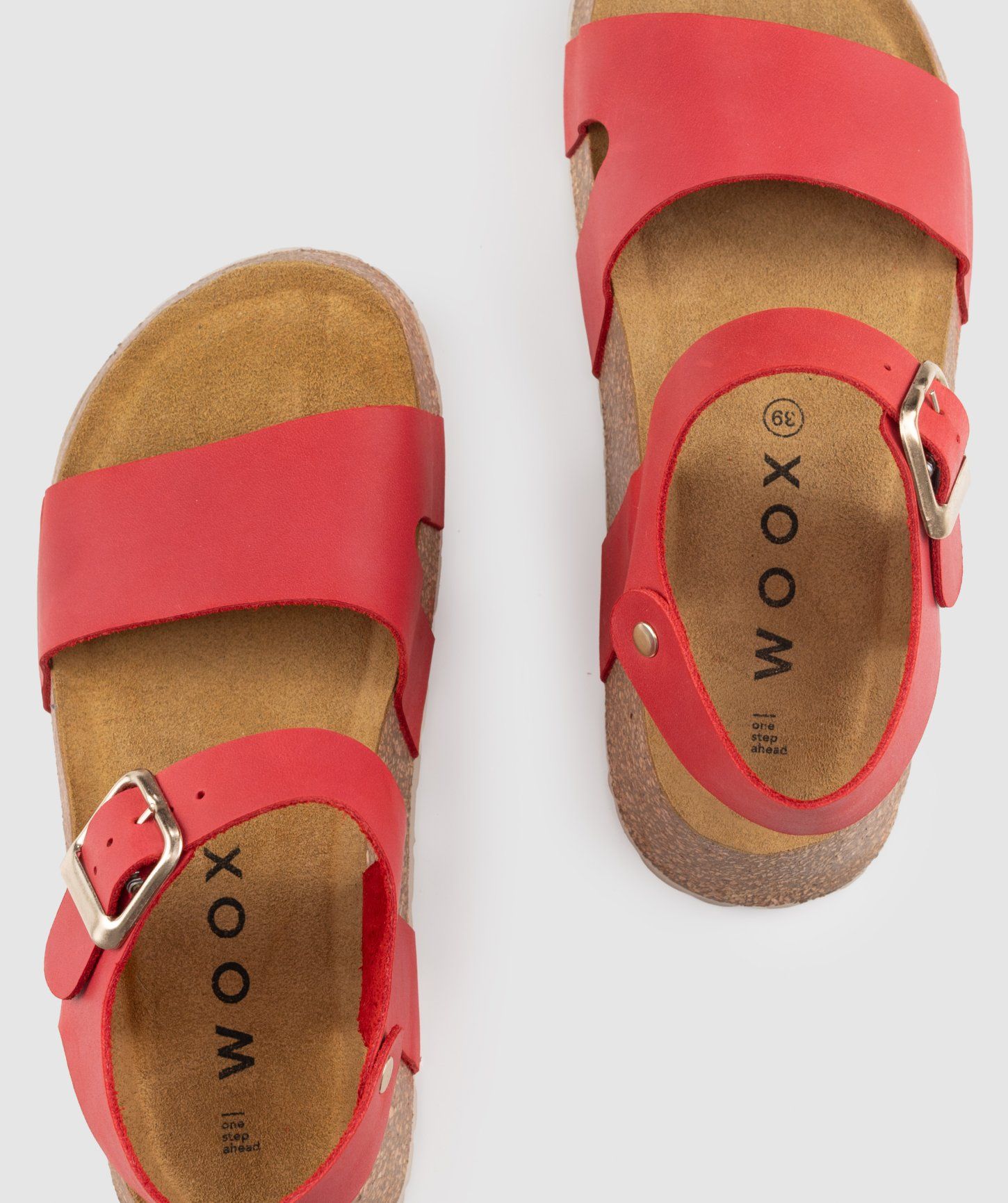 Pásky cez nohy z prírodnej kože (hladká useň), ortopedická korková stielka potiahnutá kožou a spodná časť podrážky z gumy.