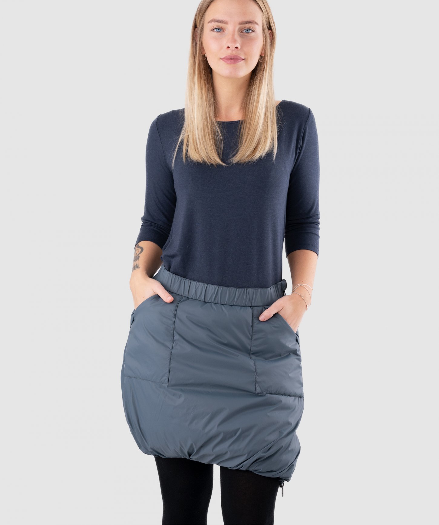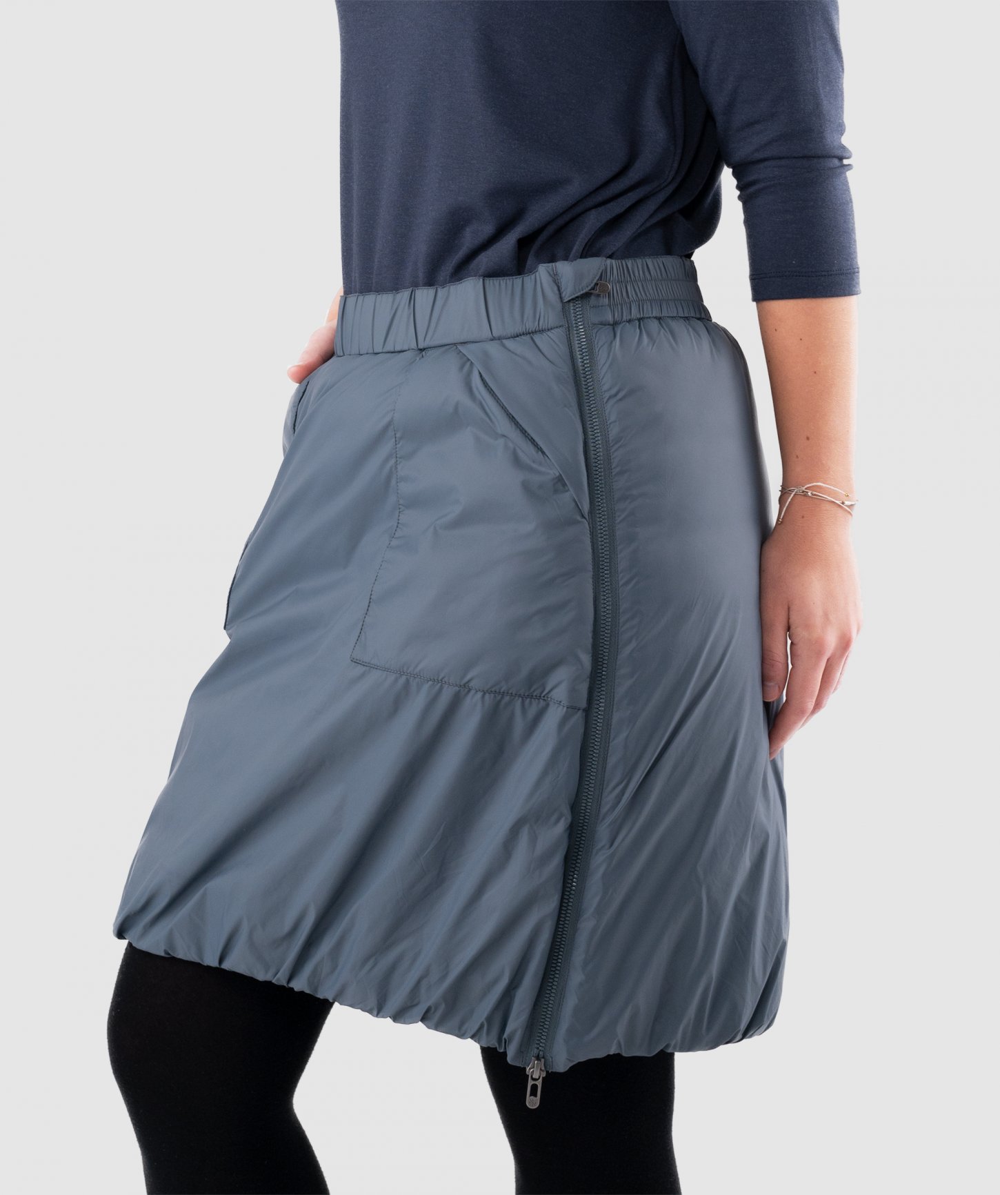 - zateplená sukňa voľného strihu vyrobená zo 100% recyklovaného nylonu