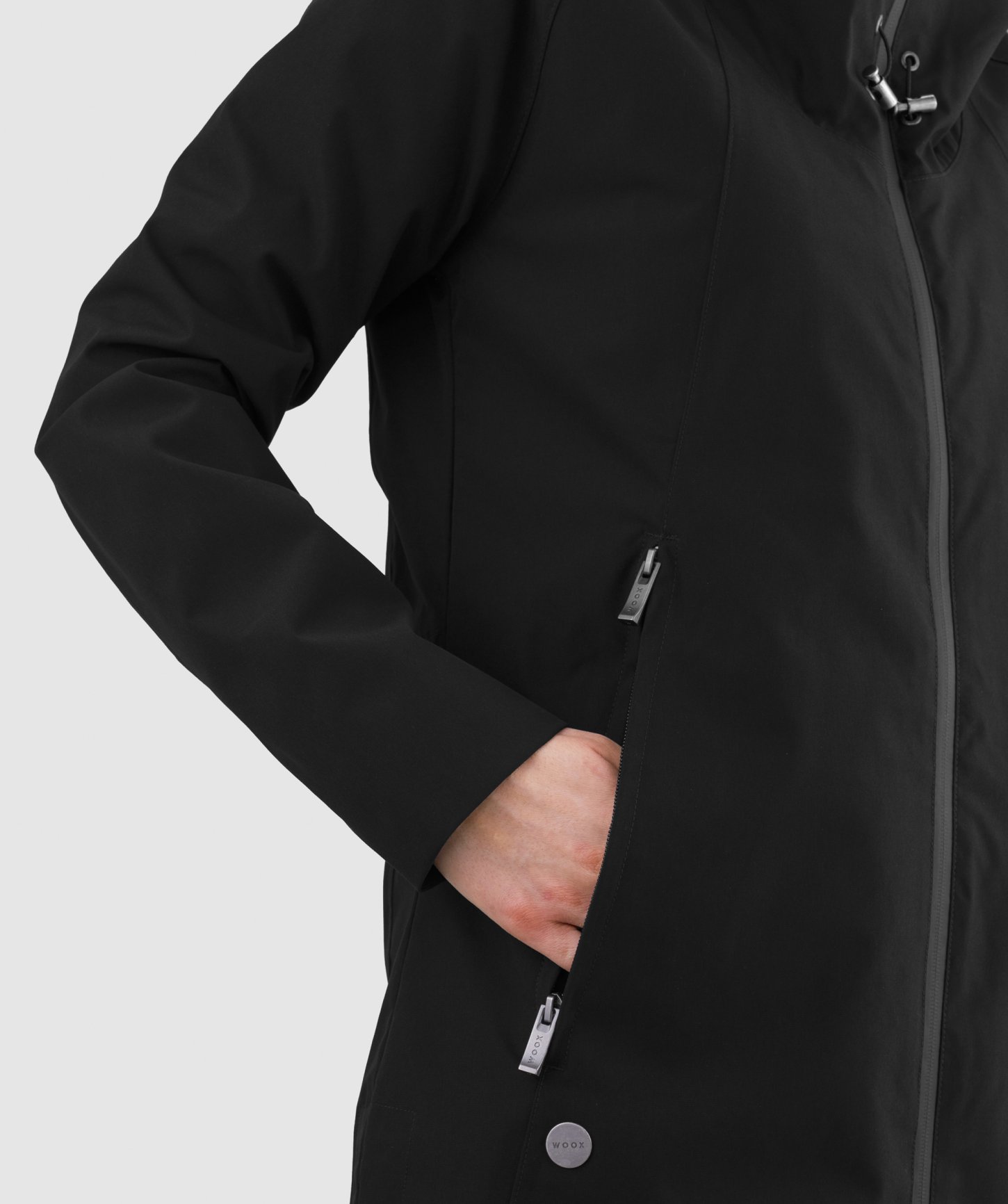 - štýlové vonkajšie sťahovanie kapucne a nastaviteľný golier
