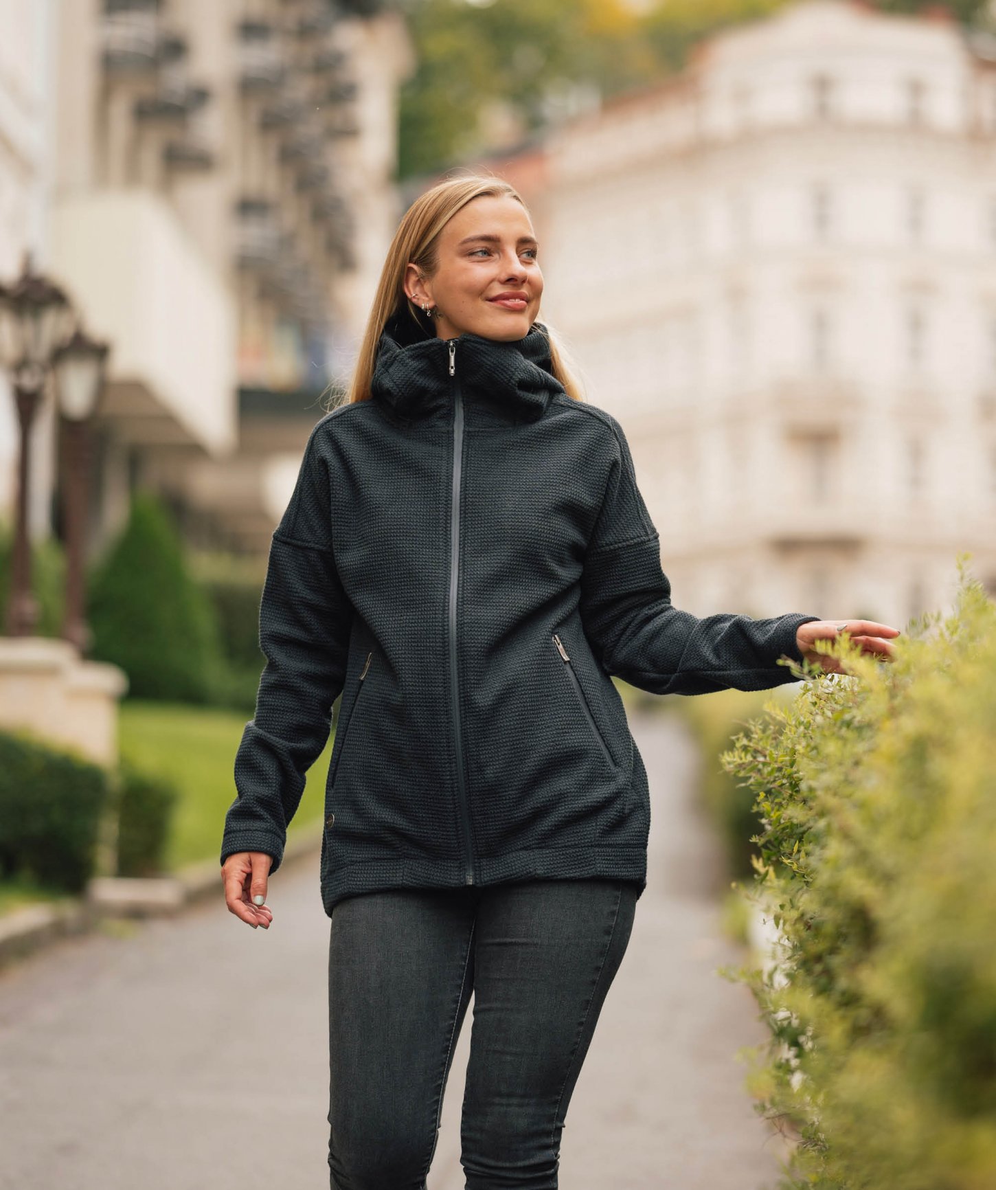 - inovatívny strih spadnutých rukávov a predĺžený zadný diel