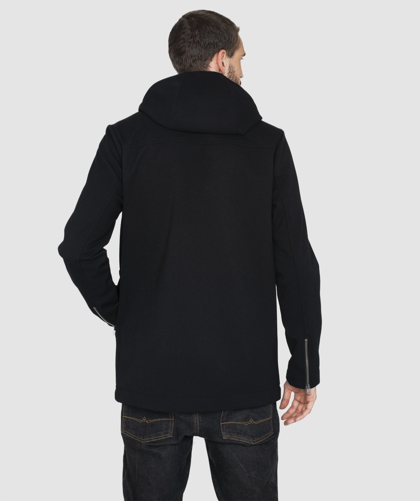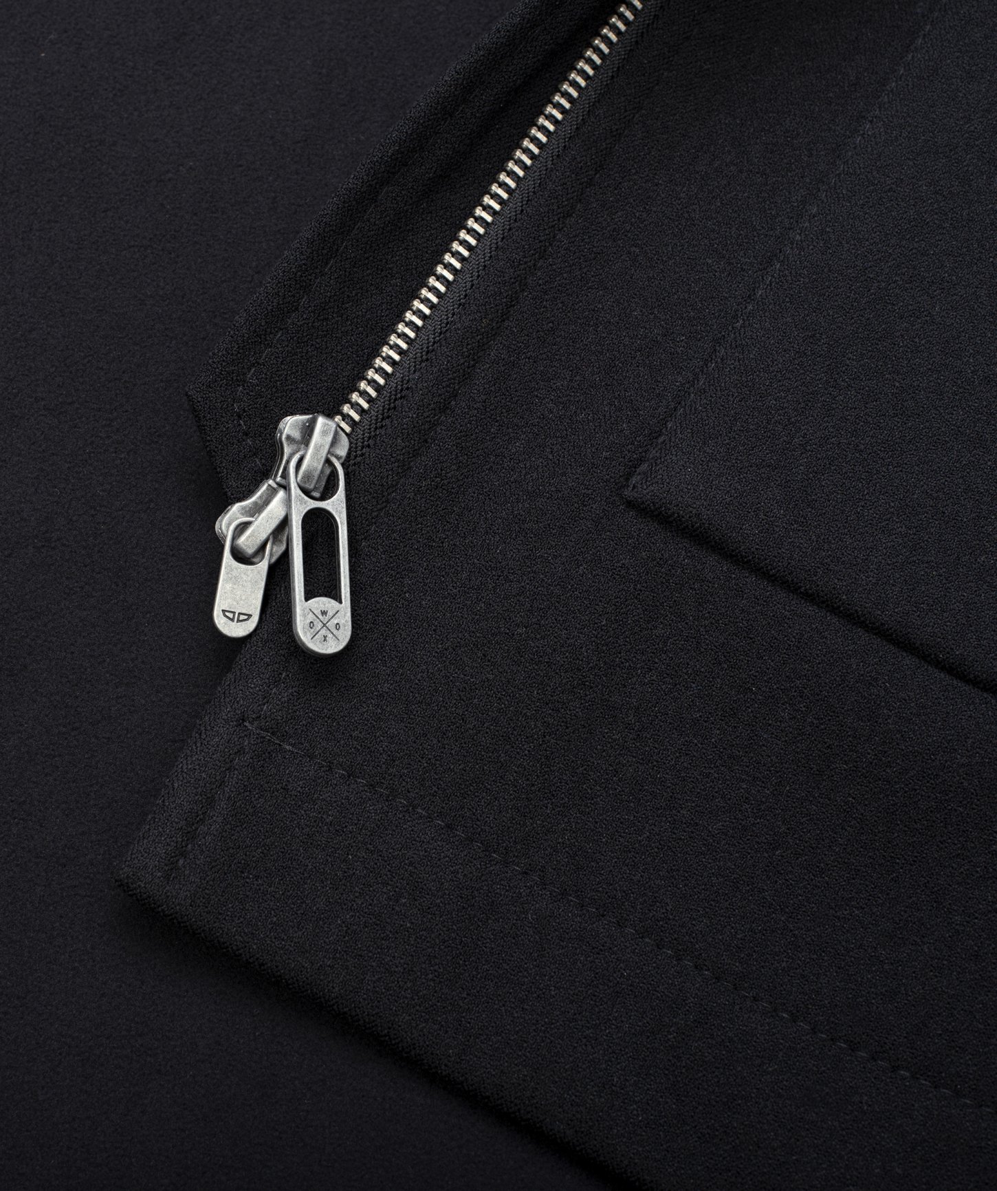 - oceľové zipsy na rukávoch a dvojcestný hlavný zips