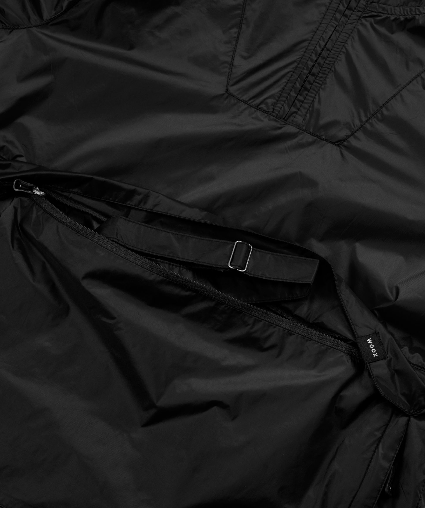- možnosť zbalenia bundy do vrecka a nosenie ako crossbody vďaka priloženému popruhu