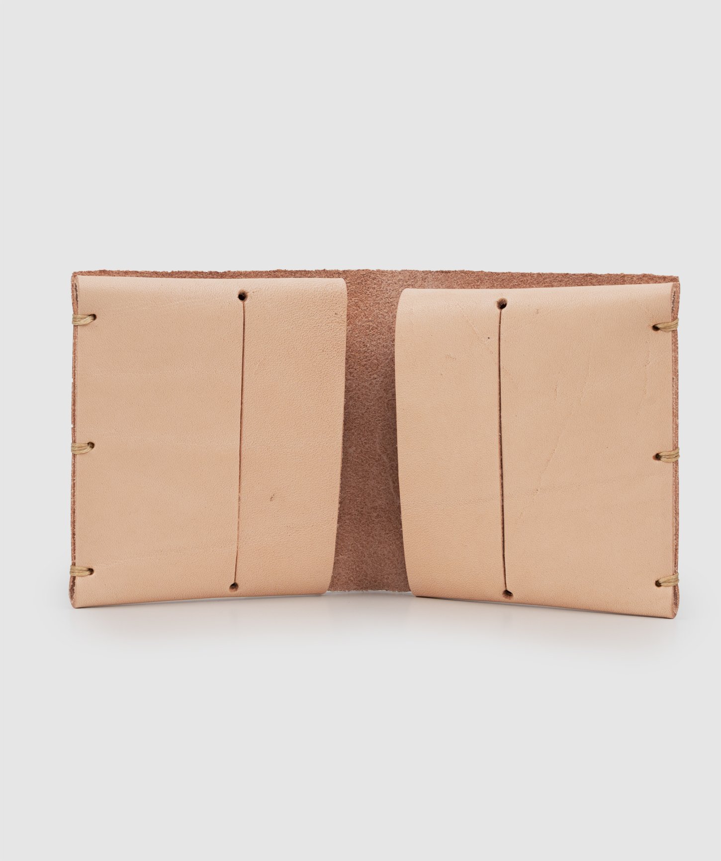 Prírodná hovädzia koža s hrúbkou 2 mm, dva vnútorné sloty na karty, dve vnútorné vrecká, slot na uloženie bankoviek. Rozmery: 9,5 × 9,5 cm. Vyrobené v ručnej kožodielni v Jeseníkoch.