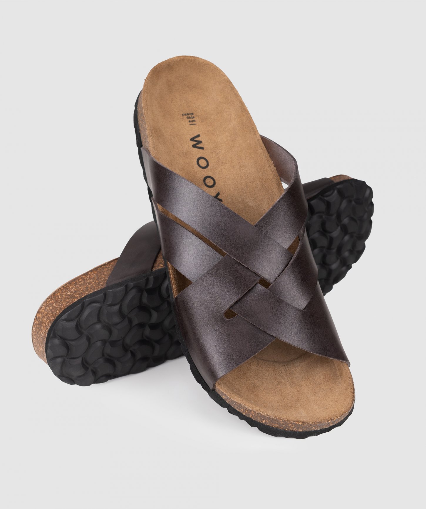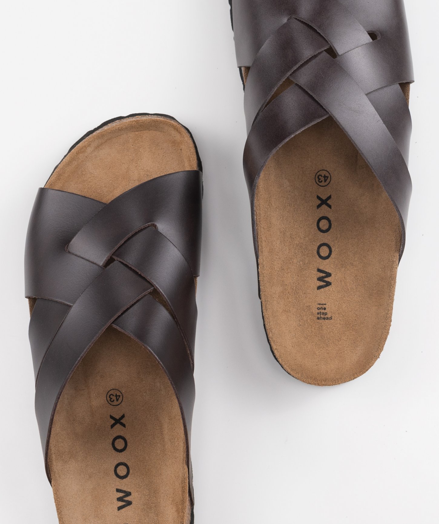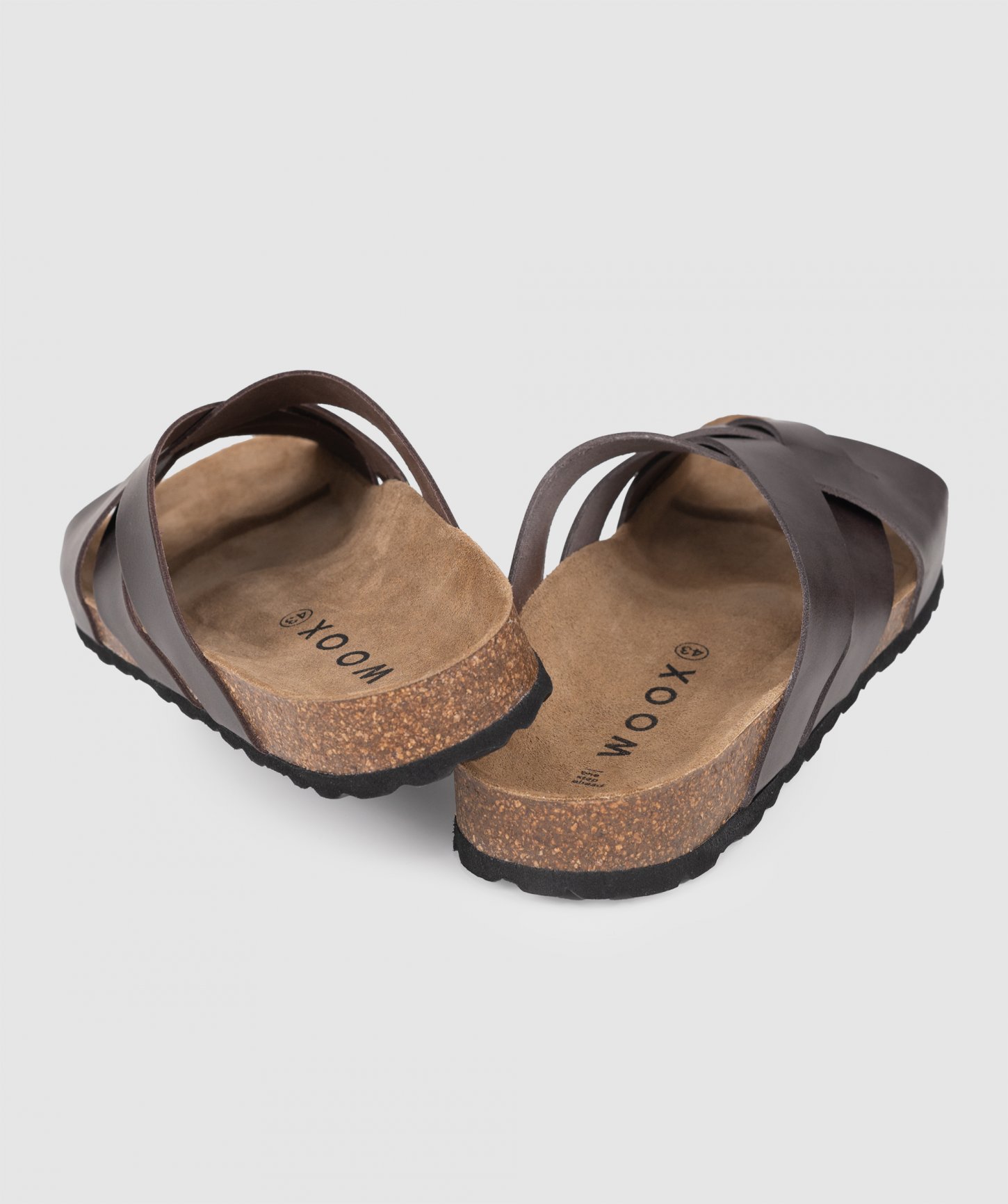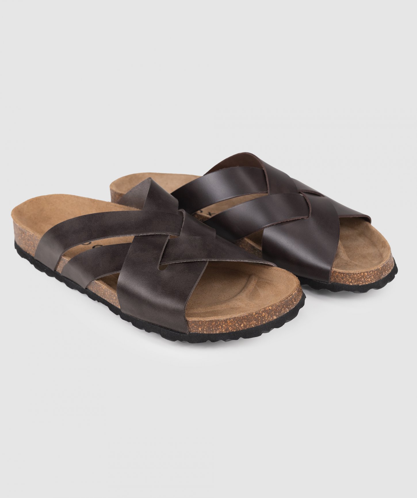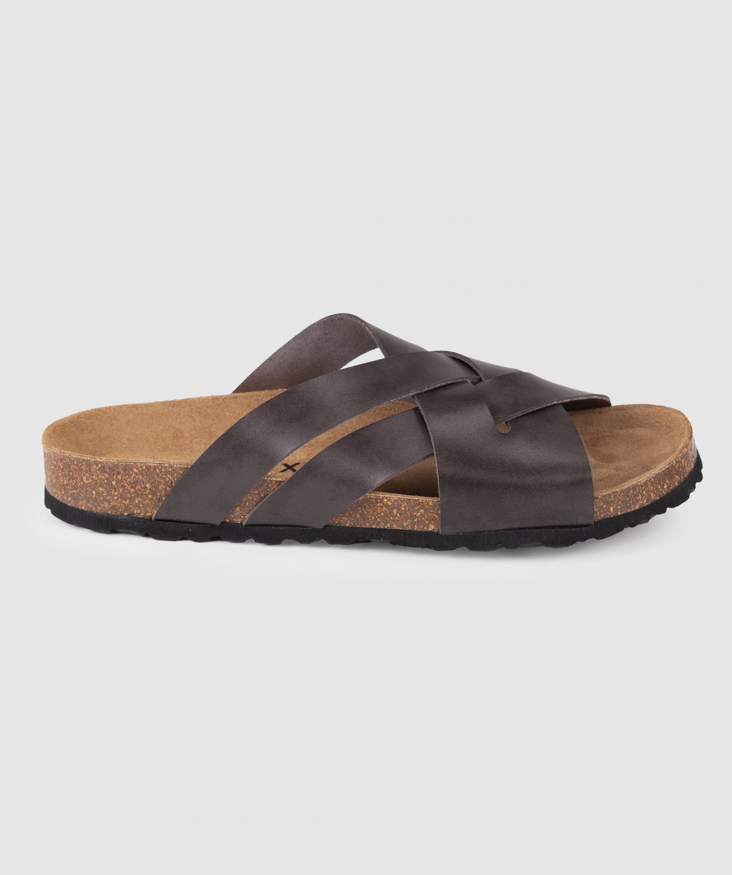 Pásky cez nohy z prírodnej kože (hladká useň), ortopedická korková stielka potiahnutá kožou a spodná časť podrážky z gumy.