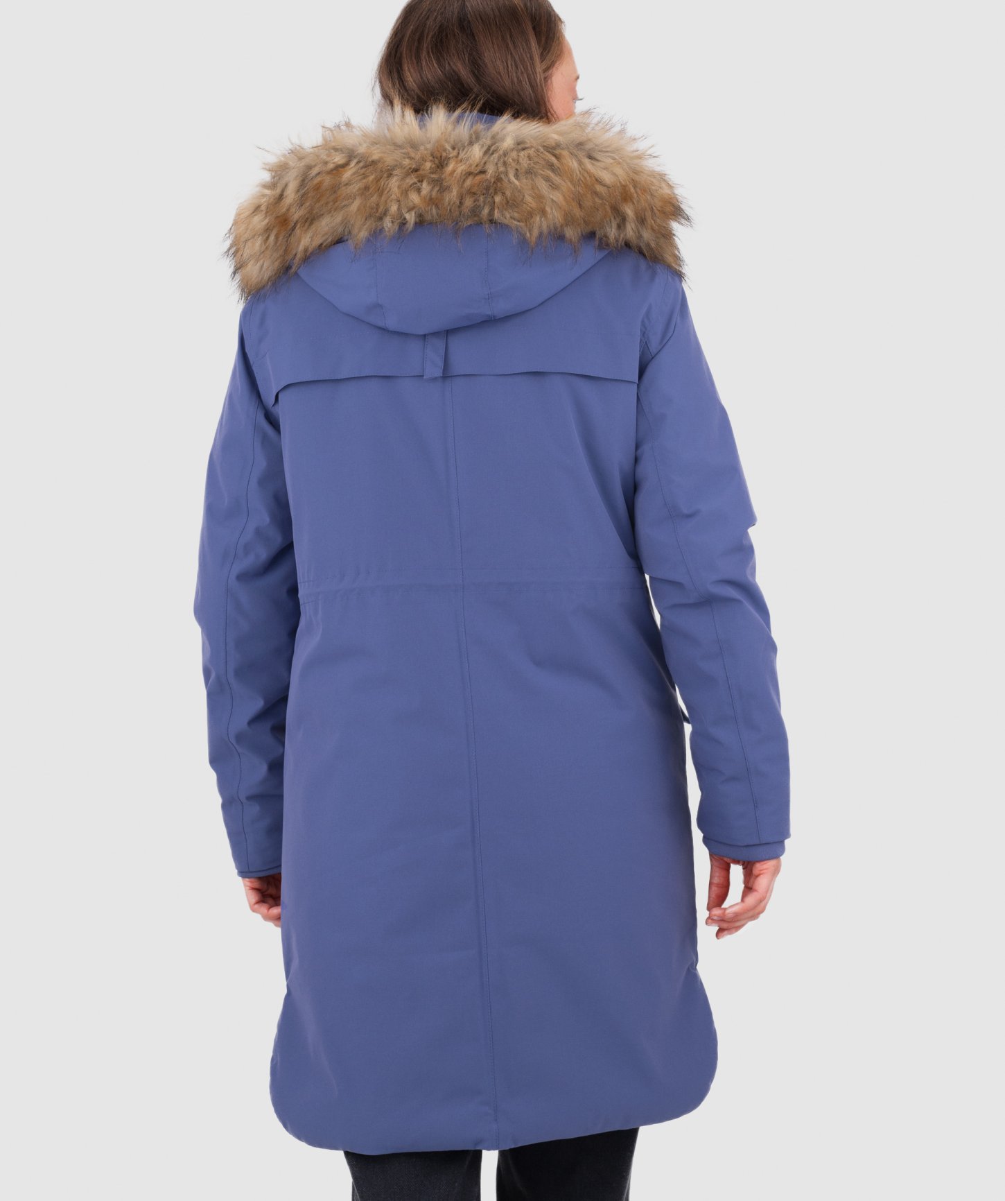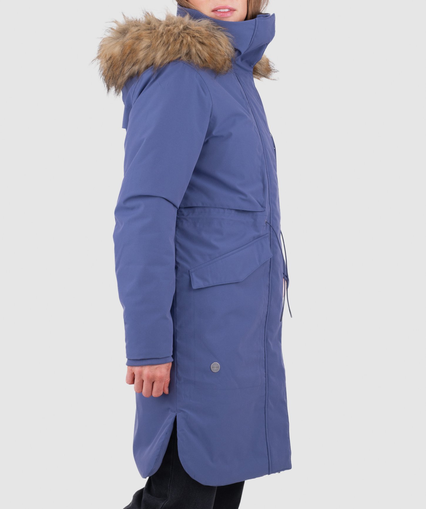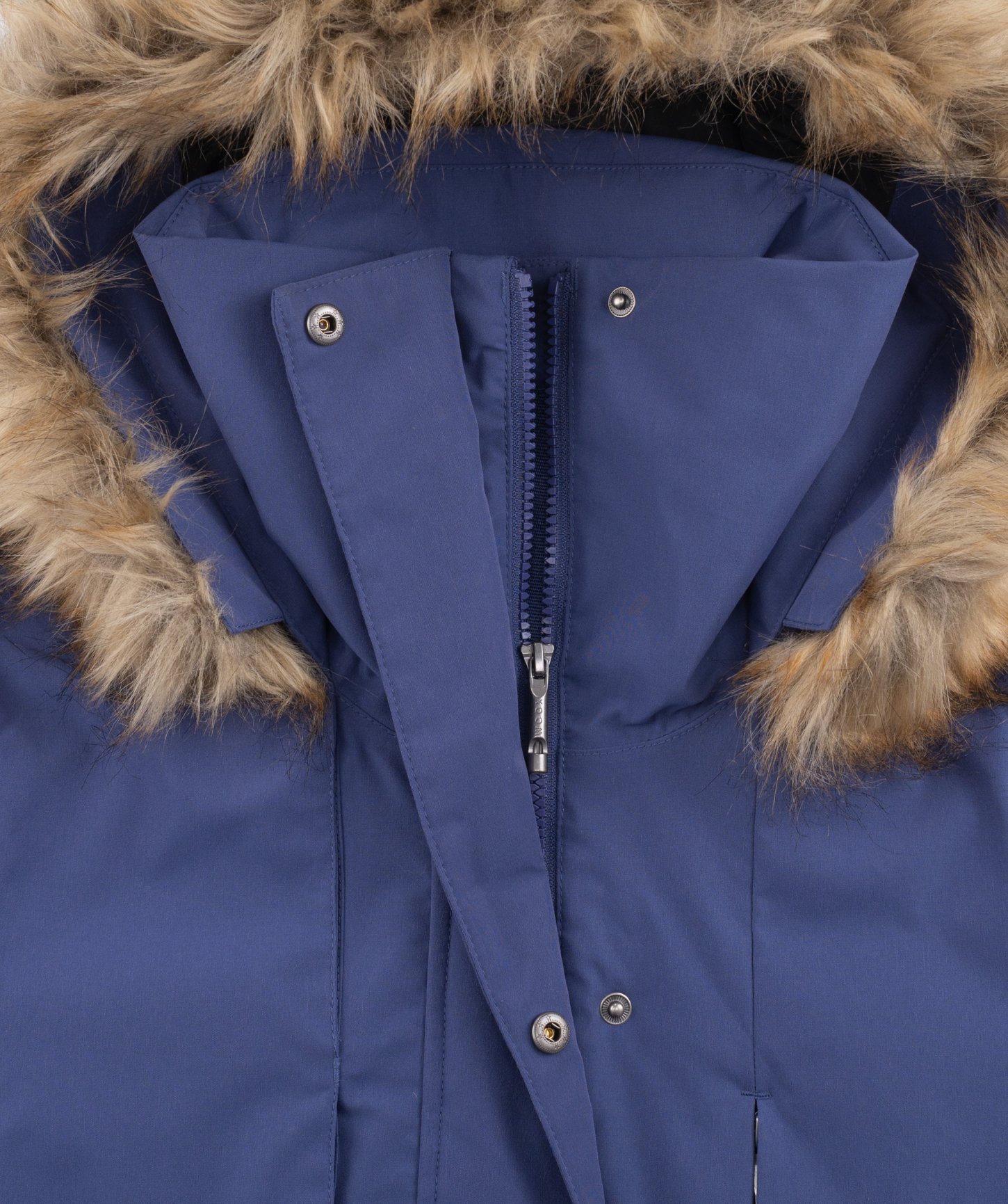 - objemná kapucňa nastaviteľná v dvoch smeroch, po celom obvode s odnímateľnou syntetickou kožušinou