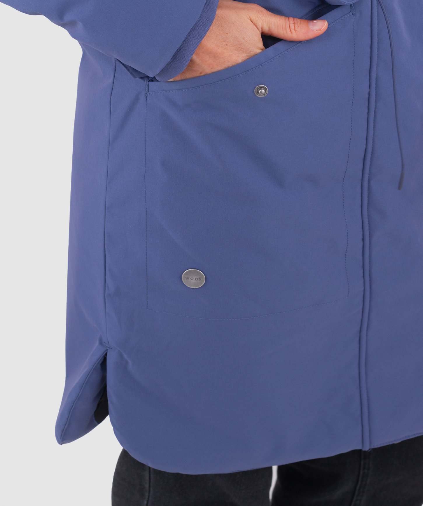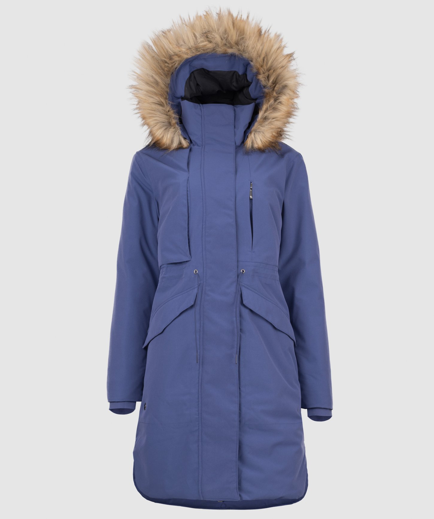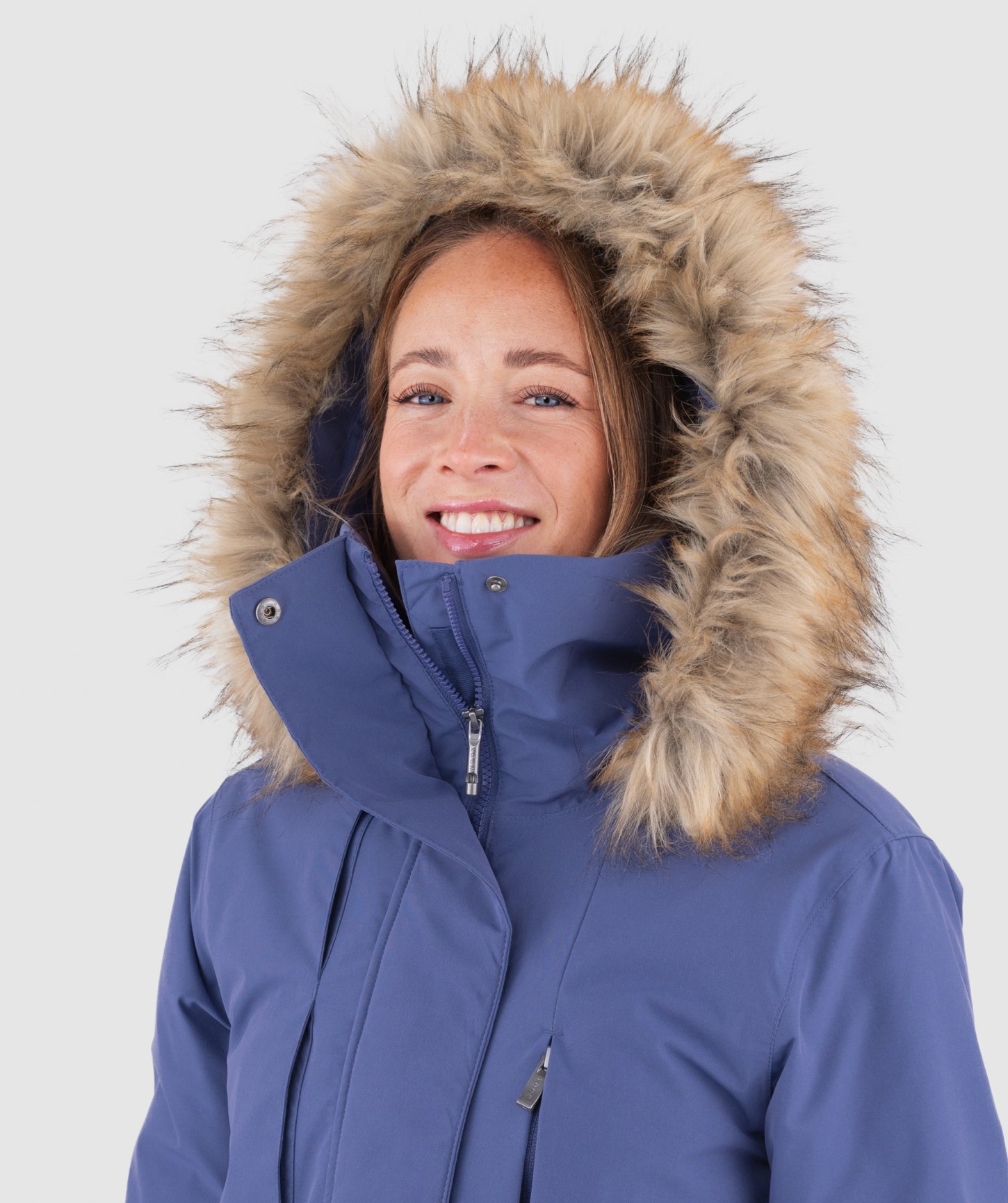 - objemná kapucňa nastaviteľná v dvoch smeroch, po celom obvode s odnímateľnou syntetickou kožušinou