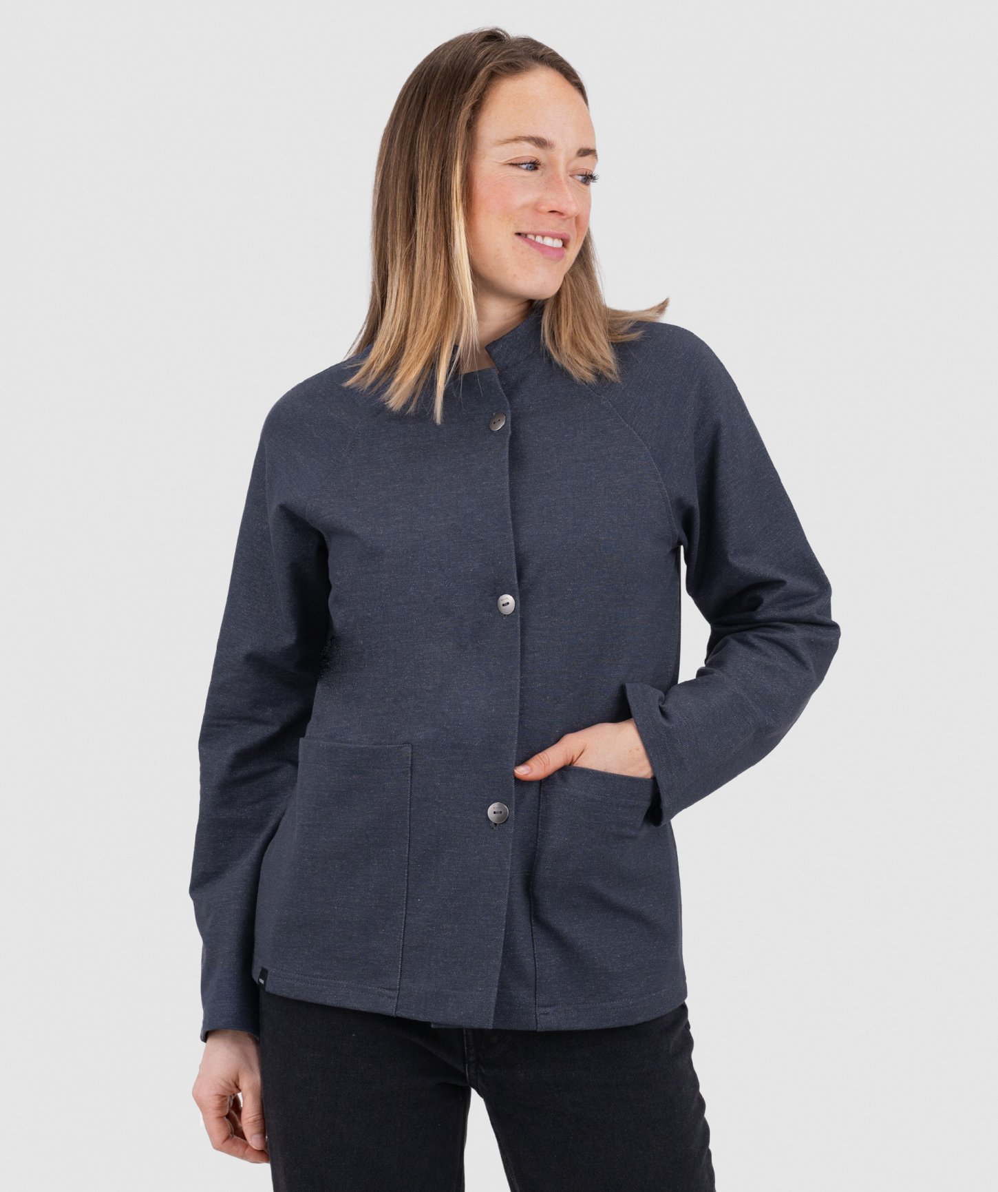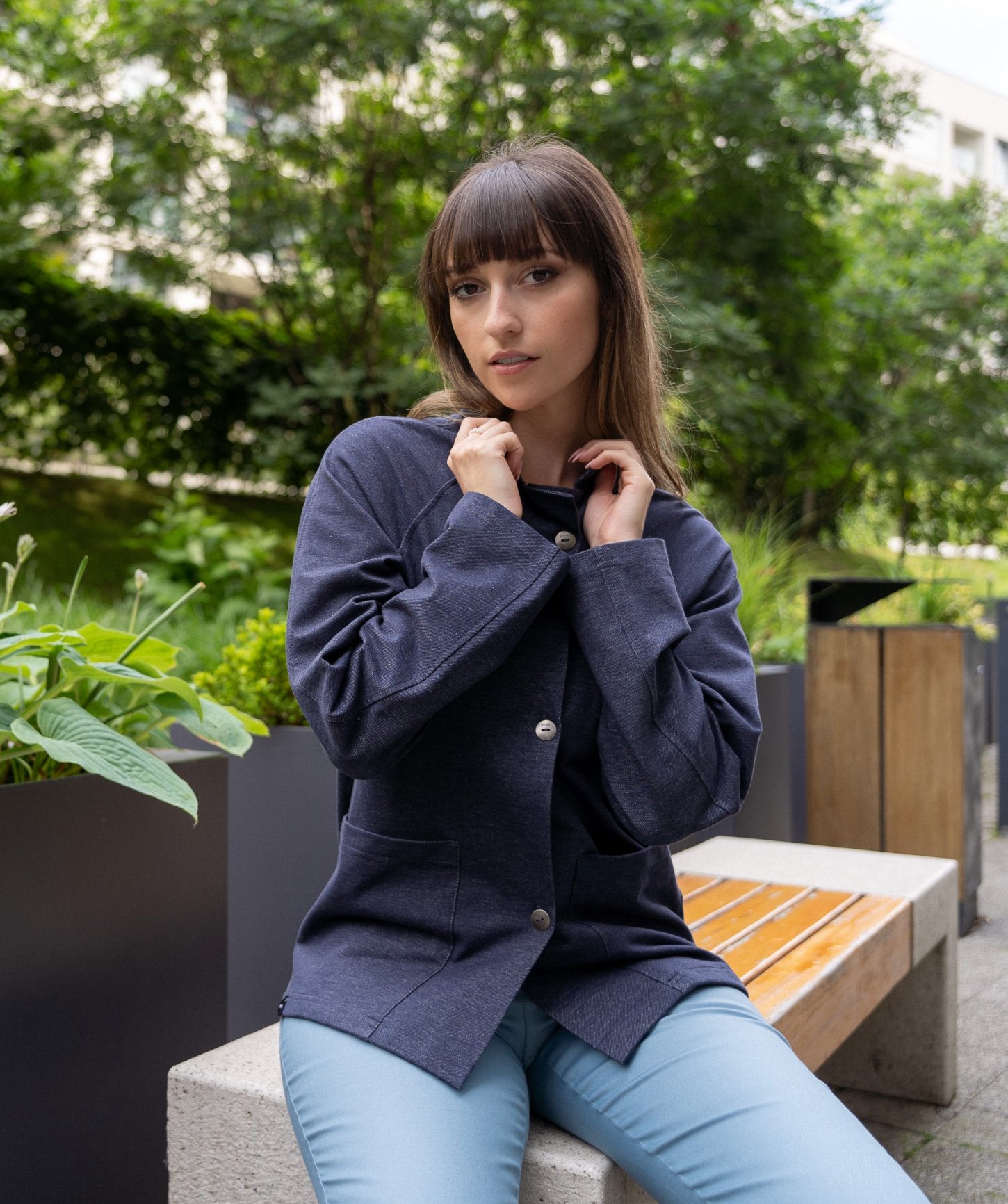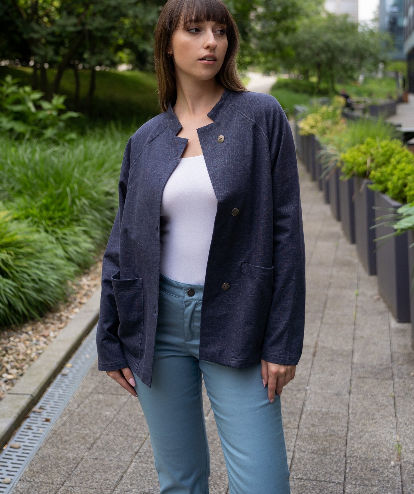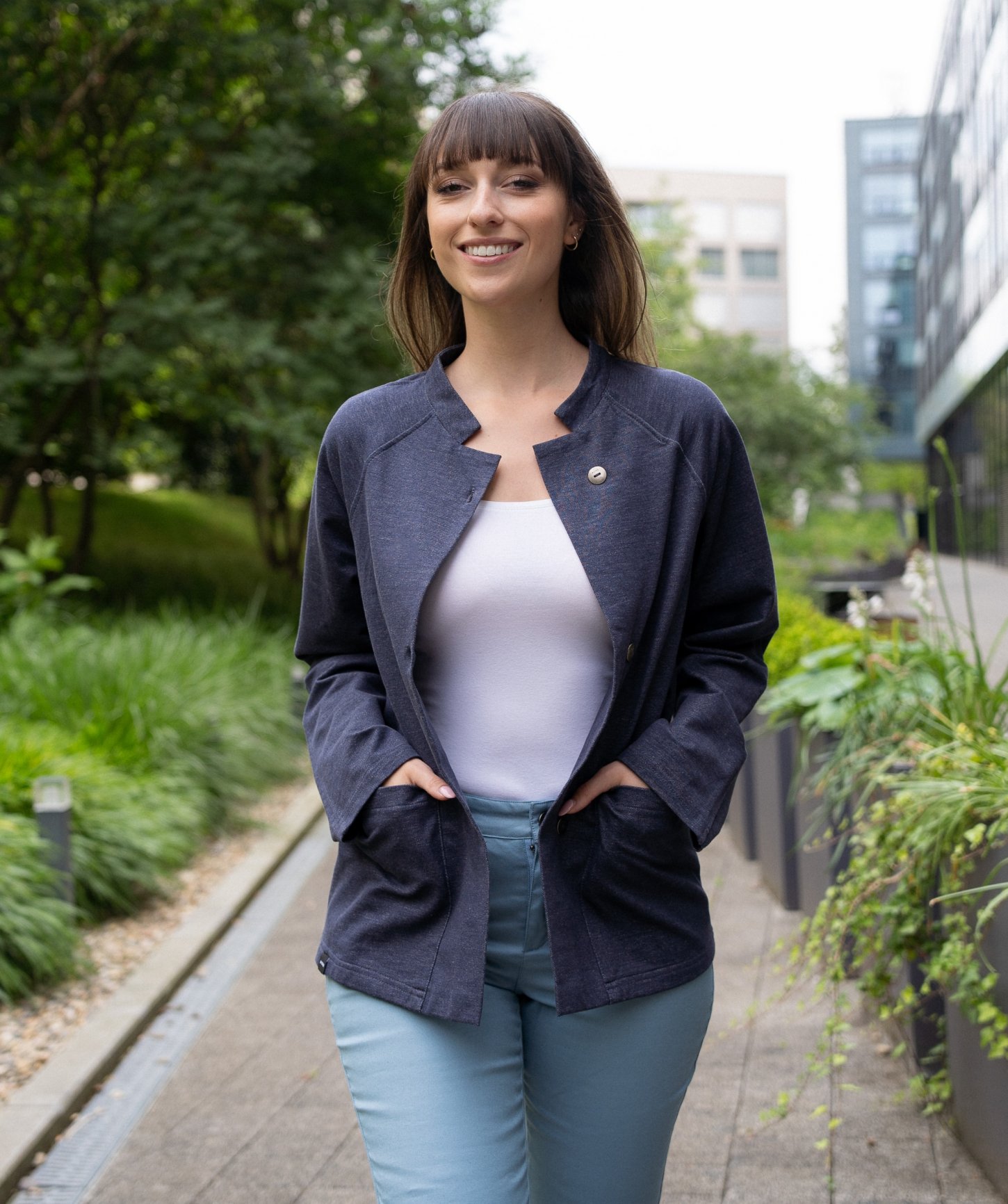 - elegantné nakladané vrecká prišité v bočnom šve