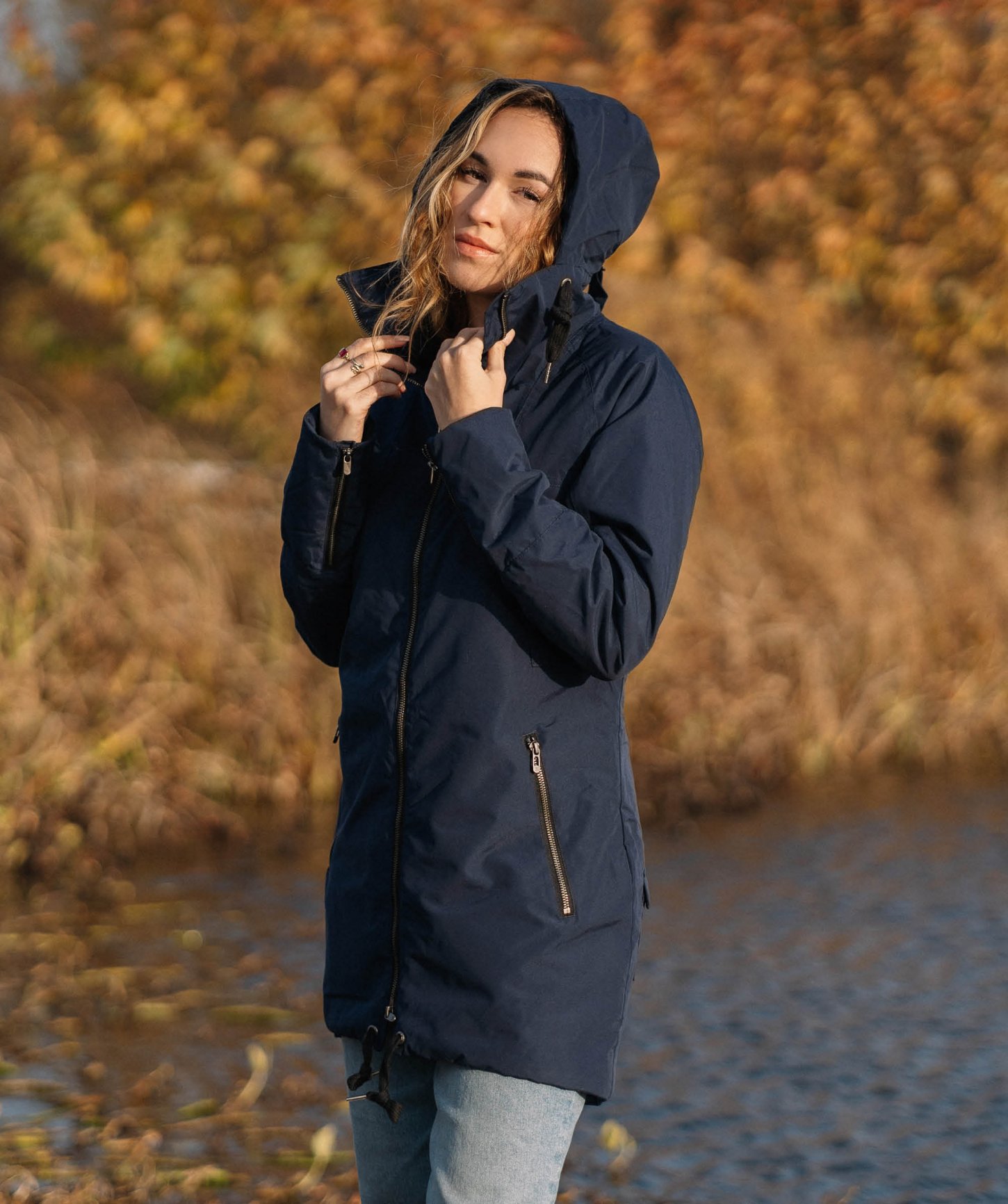 - nastaviteľná sťahovacia kapucňa a rázporky na zips pri rukávoch